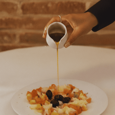 The menu blends iconic recipes such as rice dishes, traditional stews (fricandó, oxtail, lamb…) and cod, enhanced with subtle touches of Latin American and modern Mediterranean cuisine. All of it is crafted with a personal and authentic vision, the result of chef Nanclares’ years of experience in some of Barcelona’s finest restaurants.